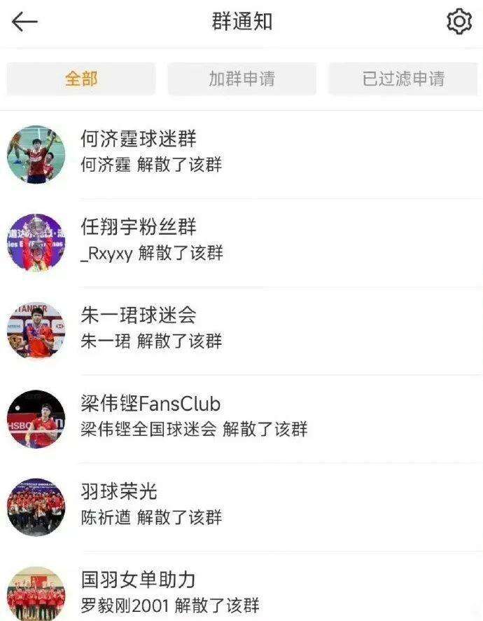 1月15日,中国乒乓球运动员王楚钦的球迷会解散微博粉丝群★★★。1月11日开始包括中国羽毛球队官博★,运动员王昶、梁伟铿★★、何济霆★、任翔宇、朱一珺、教练陈其遒★、罗毅刚等陆续解散粉丝群。详情